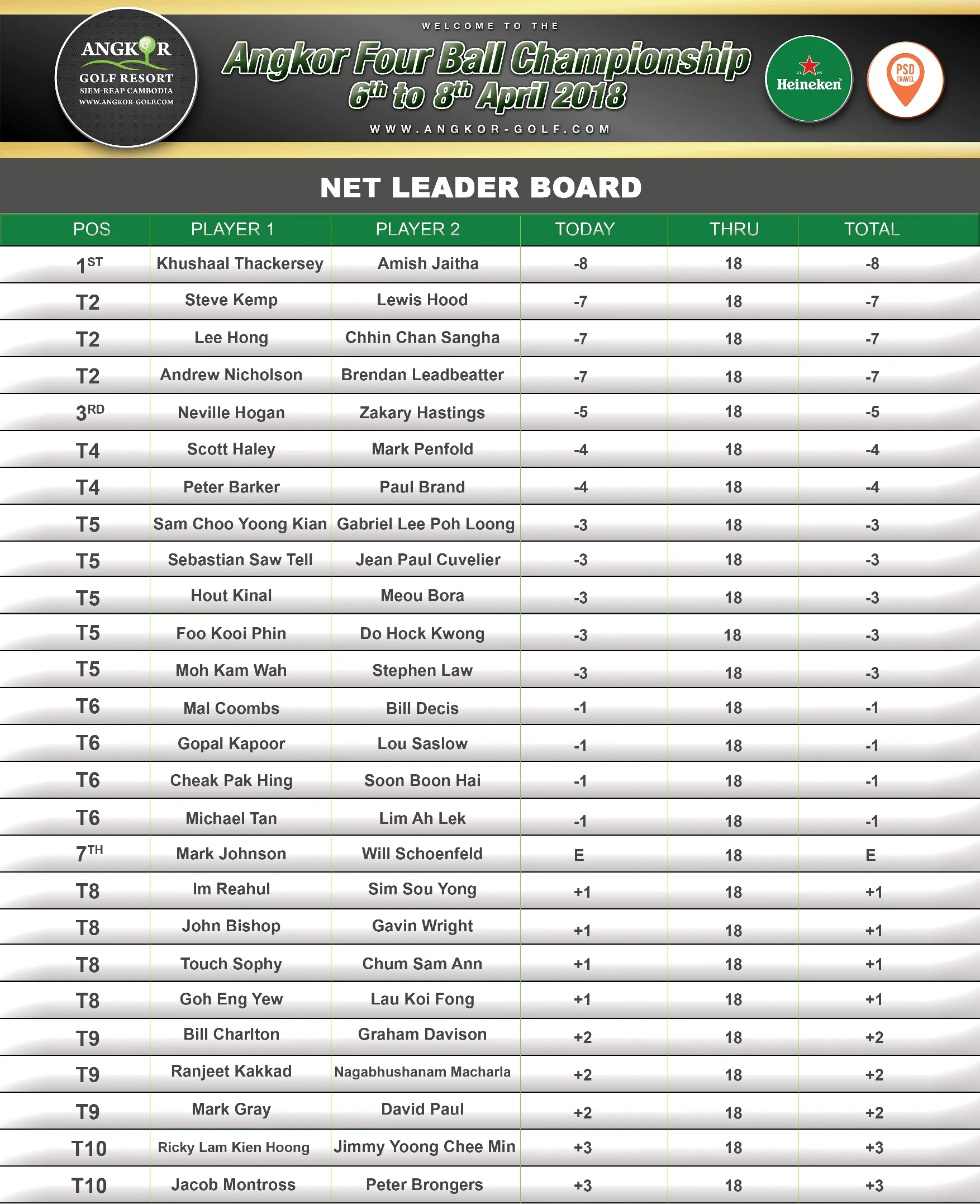 The Net Division is wide open with 12 teams currently sharing the top 5 positions. We're all set for a fascinating finally tomorrow. Now onto Victoria Angkor Resort & Spa for the official welcome dinner.